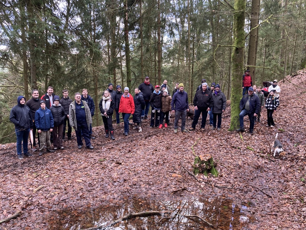 Am 25.01.2025 startete nach der Begrüßung der 1. Vorsitzenden Nicole Boßecker, 2. Bgm. Renate Schubart-Eisenhardt, stellv. Landrat Christian Gunsenheimer, KBR Stefan Püls und dem 1.Kdt. der FF Heilgersdorf Michael Langguth die Winterwanderung des KJFV um 14:00 Uhr am Schloßplatz in Heilgersdorf. Mit den ca. 50 Teilnehmern wurde noch ein Gruppenfoto mit dem Hintergrund des Schlosses gemacht. Danach führte der Weg zuerst über die Herrengasse und Unterer Ring hinaus aus Heilgersdorf. Durch Wald- und Feldwege, über den ehemaligen Bahndamm, an der Alster entlang Richtung Seßlach. Die Strecke wurde dann über den Bibel Weg zum Rückertstein, mit kurzem Stopp an Schloss Wiesen, zum Rastplatz Christenstein Hütte fortgesetzt. Dort angekommen gab es Kaltgetränke, Kaffee, Tee, Süßigkeiten, Laugenstangen und selbstgebackenen Kuchen. Nach der Stärkung ging es weiter am Funk-Mast vorbei über den Röthberg (348m) zum Christenstein hinauf. Hier war ein kurzer Zwischenstopp, um die Aussicht auf Heilgersdorf und Bischwind zu genießen. Mit entzündeten Fackeln ging es auf dem steilen Wanderweg hinab nach Heilgersdorf. Als Ziel fanden wir die Gastwirtschaft Scharpf. Dort fand dann die Winterwanderung mit einem Abendessen (Burger mit und ohne Pommes) ihren Ausklang.
